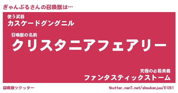 | ファンタジー風あだ名 | 『ギャフェル』『エターナルギャンブルー』 |