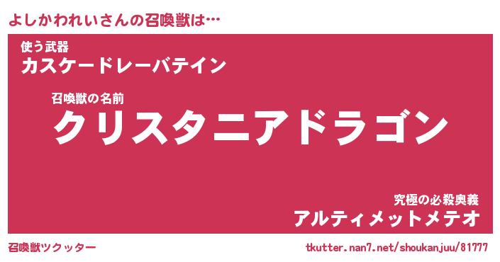 | 伝説のあだ名 | 『封印されし竜騎士よしかわれい』 |