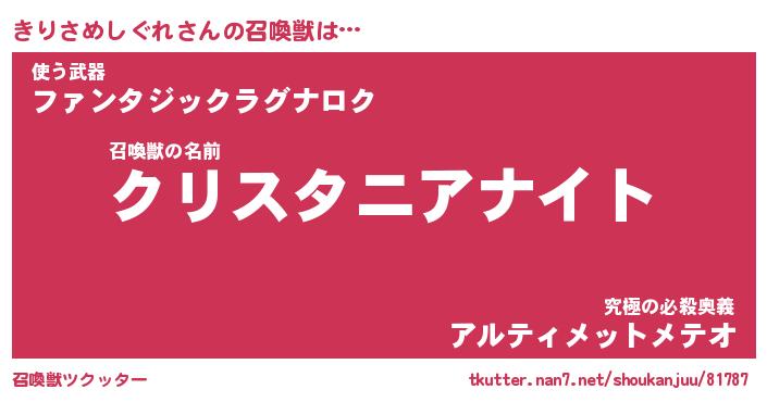| 伝説のあだ名 | 『封印されしスナイパーきりさめしぐれ』 |
