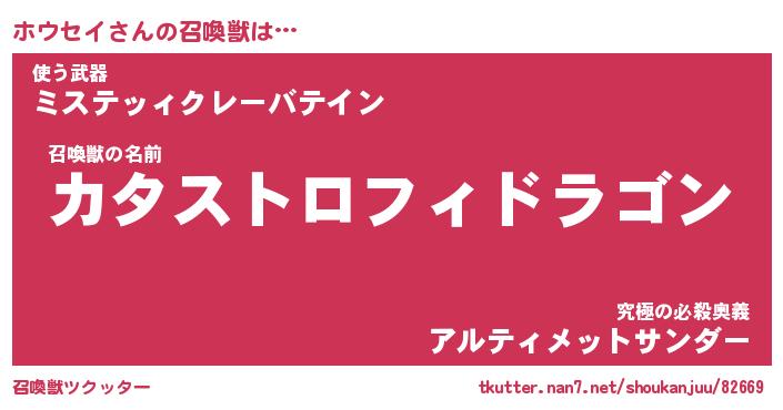 | ヒーロー風カッコイイあだ名 | 『スーパーホウセイ』『幻影騎士ホウ』 |