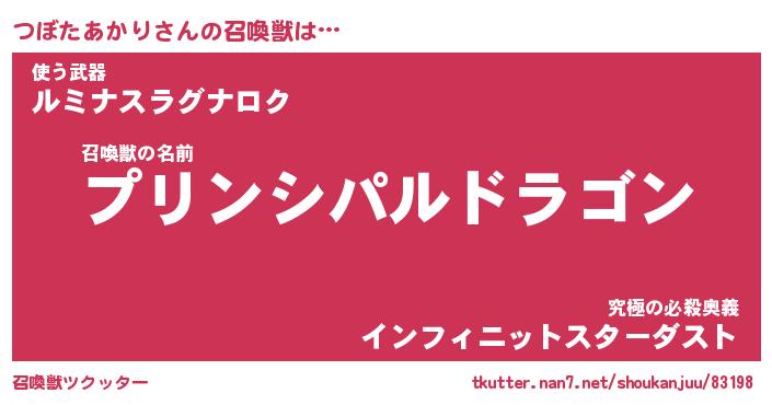 | ヒーロー風カッコイイあだ名 | 『スーパーツボタアカリ』『幻影騎士ツボ』 |