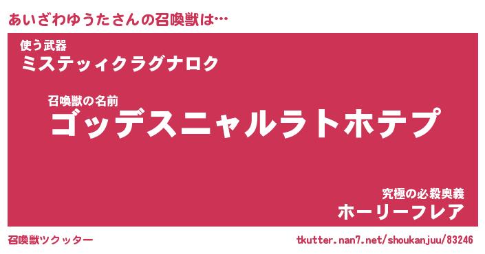 | 胡散臭い通販商品みたいなあだ名 | 『モテモテ間違いなし霊験あらたかなお札…その名も「あいざわゆうた」』 |