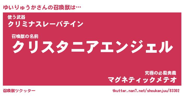 | ヒーロー風カッコイイあだ名 | 『スーパーユイリュウカ』『天弓騎士ユイ』 |