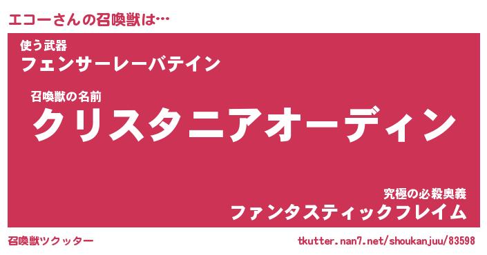 | ファンタジー風あだ名 | 『エコフェル』『エターナルエコーー』 |