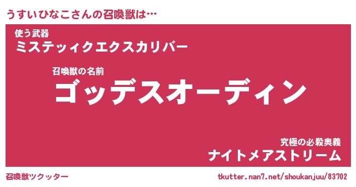 | ヒーロー風カッコイイあだ名 | 『スーパーウスイヒナコ』『天弓騎士ウス』 |