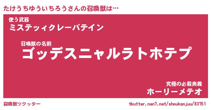 | 胡散臭い通販商品みたいなあだ名 | 『モテモテ間違いなし霊験あらたかなお札…その名も「たけうちゆういちろう」』 |