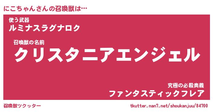 | ヒーロー風カッコイイあだ名 | 『スーパーニコチャン』『天弓騎士ニコ』 |
