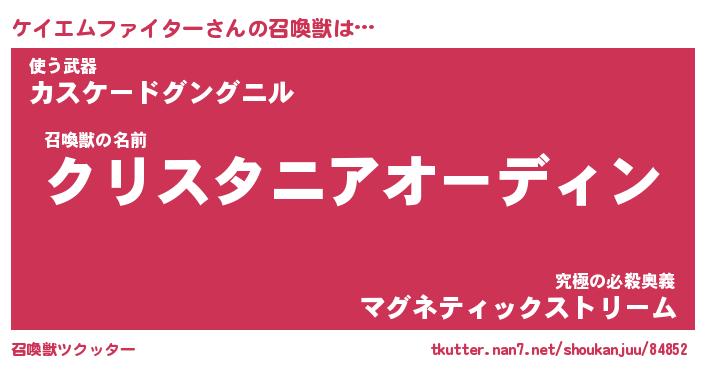 | 自動車の名前っぽいあだ名 | 『ケイティマ』『ケクア』『ヴィッケ』 |