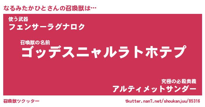| 伝説のあだ名 | 『不死鳥のスナイパーなるみたかひと』 |