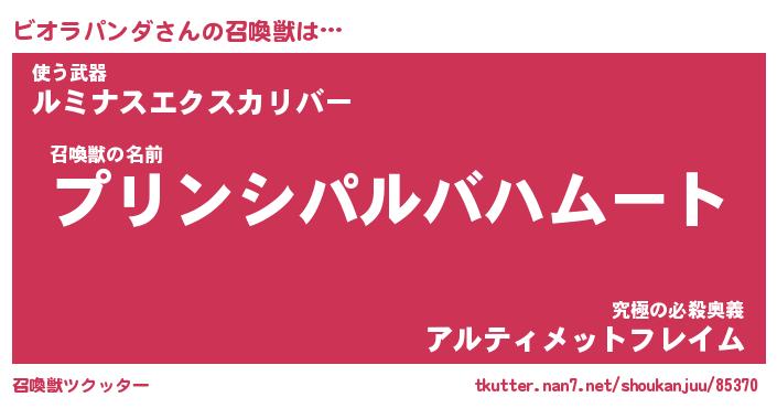 | 女子向けラノベタイトル風あだ名 | 『ビオラパンダ姫と円卓の騎士』 |