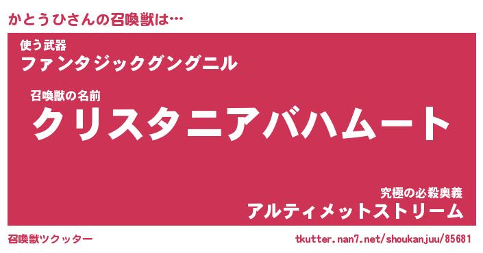 | ヒーロー風カッコイイあだ名 | 『スーパーカトウヒ』『幻影騎士カト』 |