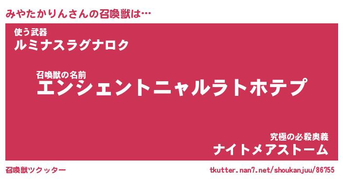 | 男性向けラノベタイトル風あだ名 | 『みやたかりんの憂鬱』 |