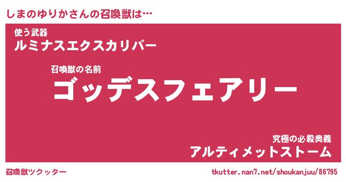 | 女子向けラノベタイトル風あだ名 | 『しまのゆりか姫と円卓の騎士』 |