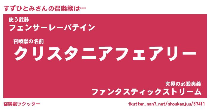 | ファンタジー風あだ名 | 『スズフェル』『エターナルスズヒトミー』 |