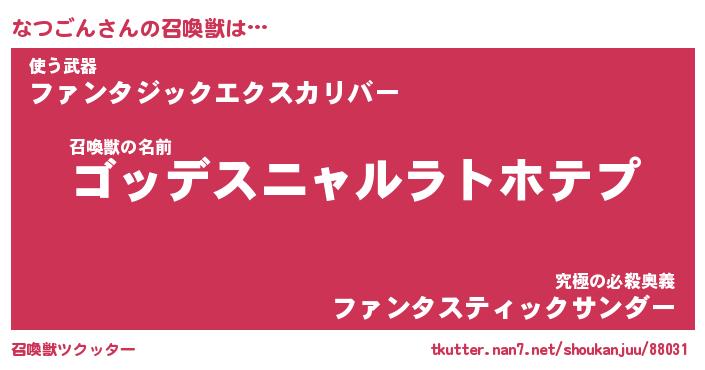 | 伝説のあだ名 | 『不死鳥のスナイパーなつごん』 |