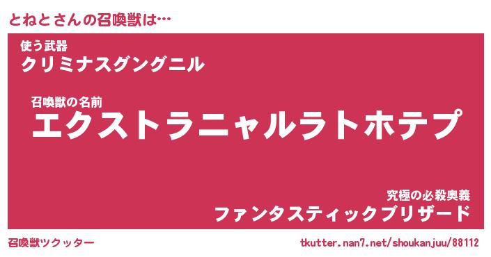 | ファンタジー風あだ名 | 『トネフェル』『エターナルトネトー』 |