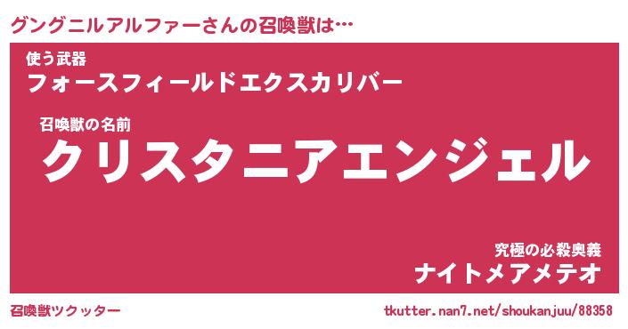 | 料理風あだ名 | 『ネギたっぷりグングニルアルファーの南蛮漬け』 |