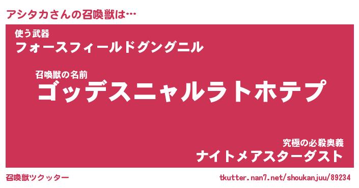 | 男性向けラノベタイトル風あだ名 | 『アシタカアートオンライン』 |