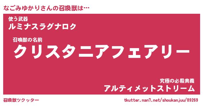 | ヒーロー風カッコイイあだ名 | 『スーパーナゴミユカリ』『魔戒騎士ナゴ』 |