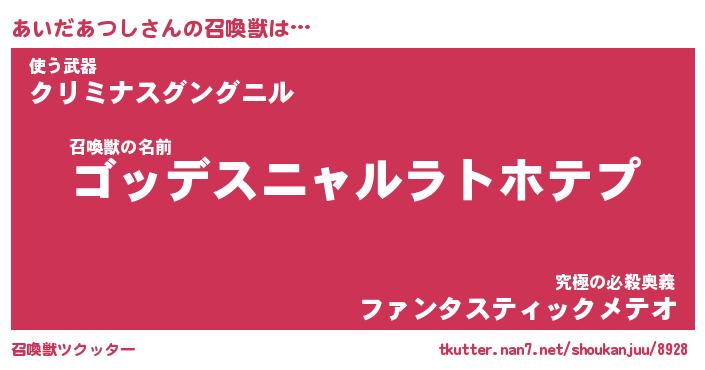 | 伝説のあだ名 | 『不死鳥のスナイパーあいだあつし』 |