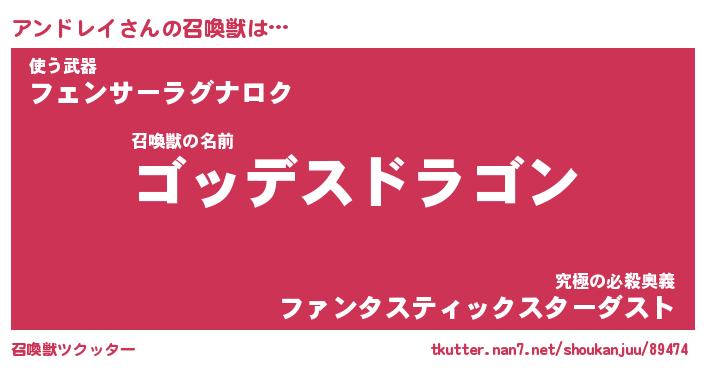| ファンタジー風あだ名 | 『アンフェル』『エターナルアンドレイー』 |