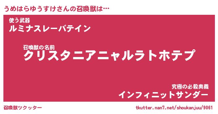 | ファンタジー風あだ名 | 『ウメフェル』『ファントムウメス』 |