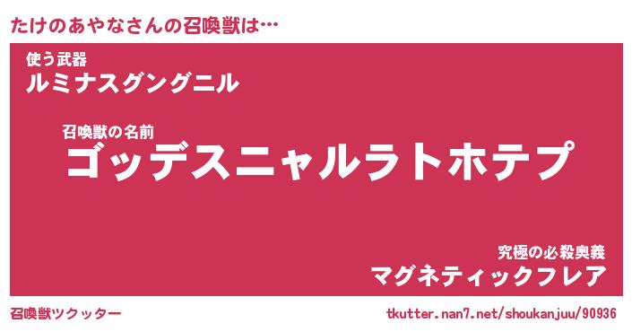| 伝説のあだ名 | 『不死鳥のスナイパーたけのあやな』 |