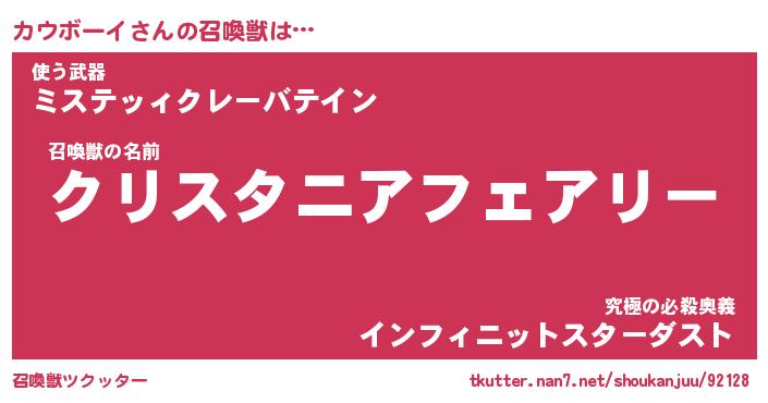 | ファンタジー風あだ名 | 『カウフェル』『エターナルカウボーイー』 |