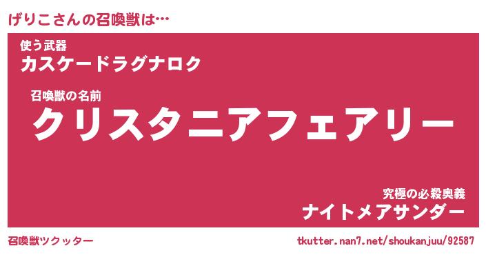 | ファンタジー風あだ名 | 『ゲリフェル』『エターナルゲリコー』 |