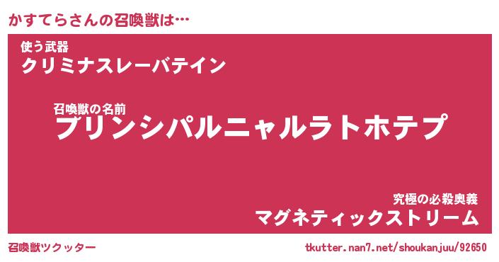 | ヒーロー風カッコイイあだ名 | 『スーパーカステラ』『天弓騎士カス』 |