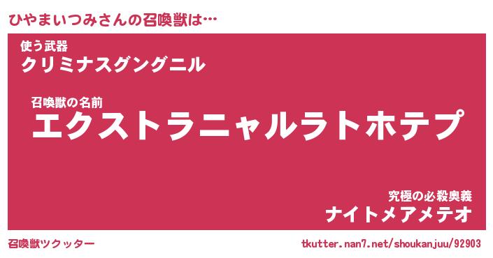 | 伝説のあだ名 | 『伝説のスナイパーひやまいつみ』 |