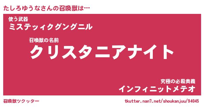 | ヒーロー風カッコイイあだ名 | 『スーパータシロユウナ』『天弓騎士タシ』 |