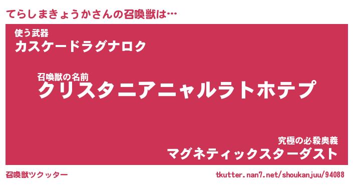 | ツイッター | てらしまきょうかさんのツイッターID『namakemono_nyan』 |