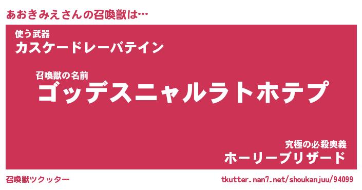| ファンタジー風あだ名 | 『アオフェル』『エターナルアオキミエー』 |