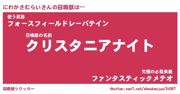 | 伝説のあだ名 | 『封印されしスナイパーにわかさむらい』 |