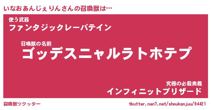 | 胡散臭い通販商品みたいなあだ名 | 『モテモテ間違いなし霊験あらたかなお札…その名も「いなおあんじぇりん」』 |