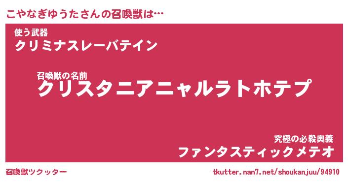 | 伝説のあだ名 | 『封印されしスナイパーこやなぎゆうた』 |