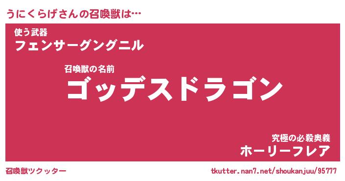 | 伝説のあだ名 | 『不死鳥の竜騎士うにくらげ』 |