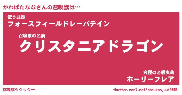 | 伝説のあだ名 | 『封印されし竜騎士かわばたなな』 |