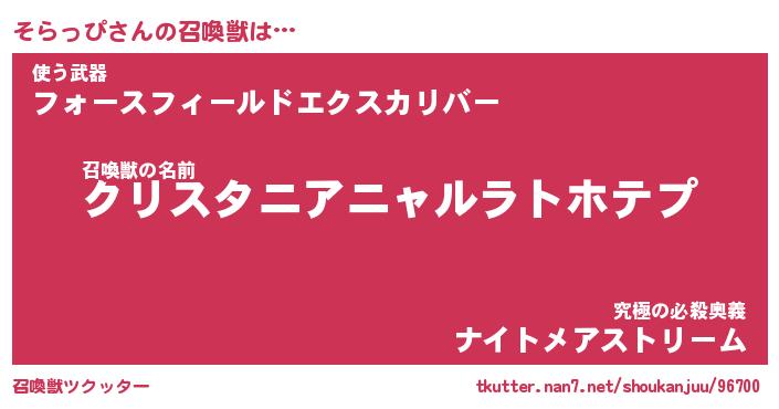 | 伝説のあだ名 | 『封印されしスナイパーそらっぴ』 |