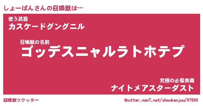 | 伝説のあだ名 | 『不死鳥のスナイパーしょーぱん』 |