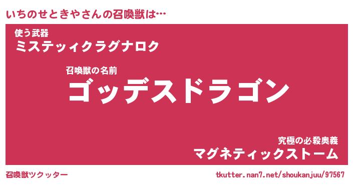 | ヒーロー風カッコイイあだ名 | 『スーパーイチノセトキヤ』 |