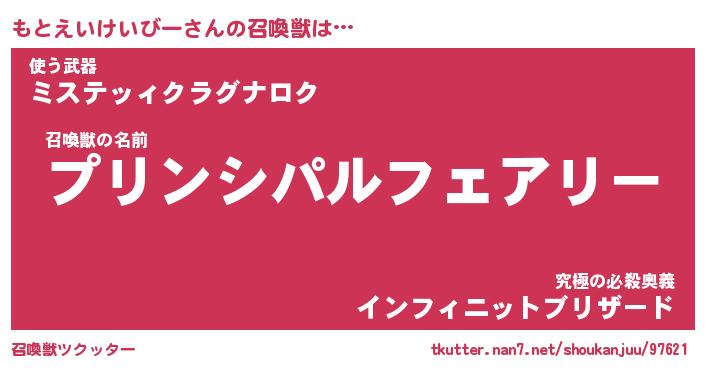| 女子向けラノベタイトル風あだ名 | 『もとえいけいびー姫と円卓の騎士』 |