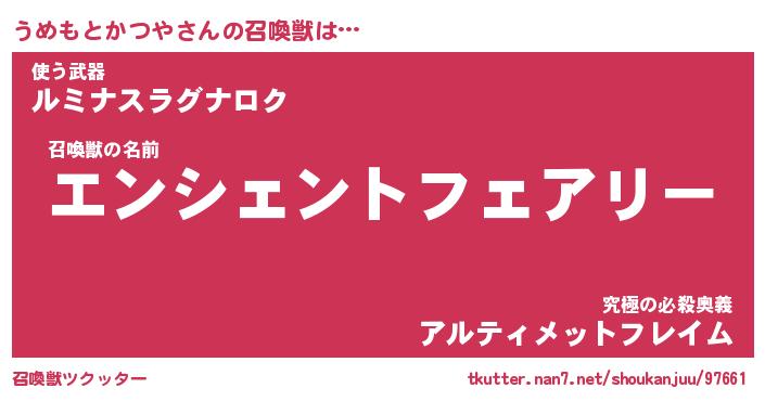| ヒーロー風カッコイイあだ名 | 『スーパーウメモトカツヤ』 |