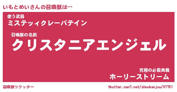 | ヒーロー風カッコイイあだ名 | 『スーパーイモトメイ』『暗黒騎士イモ』 |