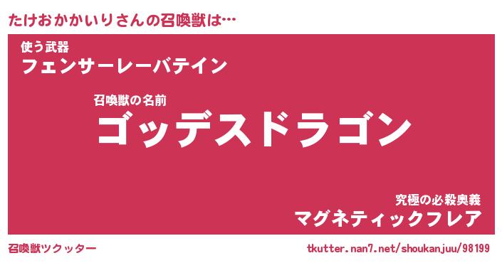 | 伝説のあだ名 | 『不死鳥の竜騎士たけおかかいり』 |
