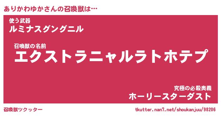 | 伝説のあだ名 | 『伝説のスナイパーありかわゆか』 |