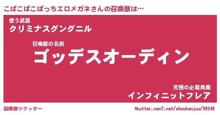 | 女子向けラノベタイトル風あだ名 | 『こばこばこばっちエロメガネ姫と円卓の騎士』 |