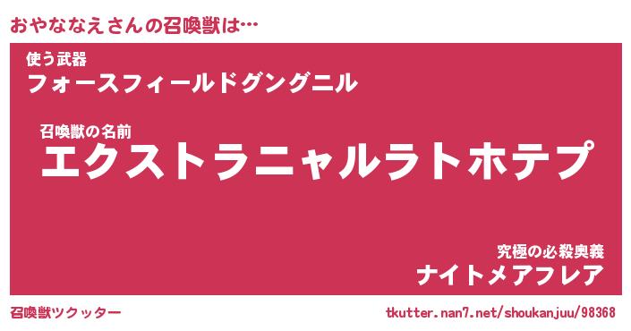 | 胡散臭い通販商品みたいなあだ名 | 『必ず成功する霊験あらたかなお札…その名も「おやななえ」』 |