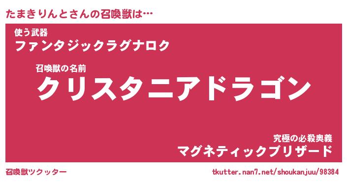 | 伝説のあだ名 | 『封印されし竜騎士たまきりんと』 |